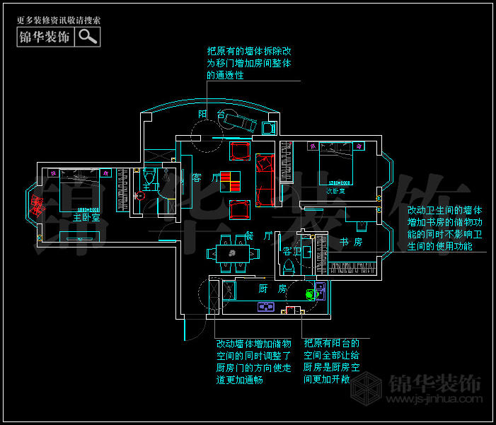 (2)把原有陽臺的空間讓給廚房用使廚房的空間更加開敞功能更加明確